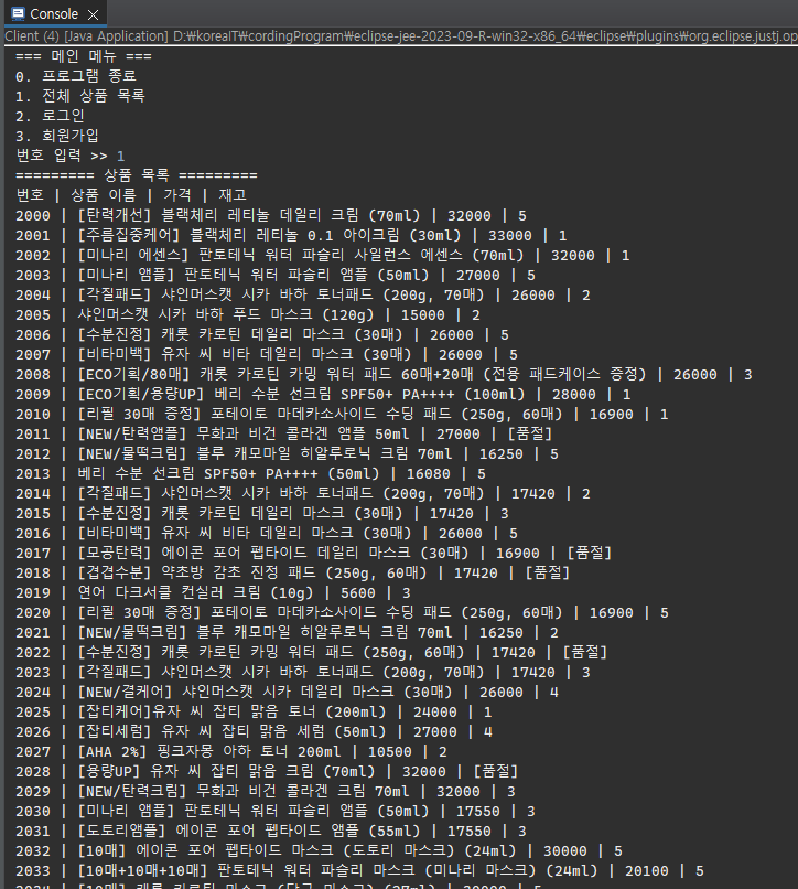 실행하여 상품 목록을 출력해보면, 정상적으로 출력된다.