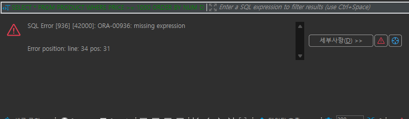 이 오류는 SQL 쿼리에 필요한 표현식이 빠져 있을 때 발생한다.