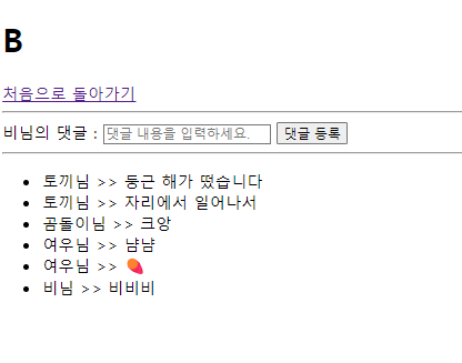 - b로 이동하여 댓글을 추가 입력받거나 댓글을 보여준다.