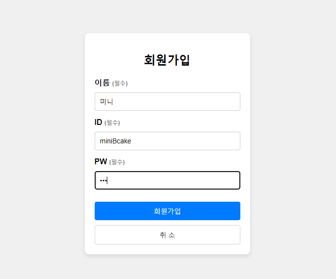 - 회원가입 페이지에서 취소를 누르면 로그인 페이지로 돌아간다.
