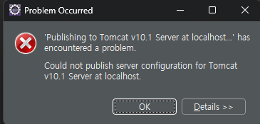 오늘 하루 종일 괴롭힌... 'publishing to Tomcat v10.1 Server at localhost' has encountered a problem.