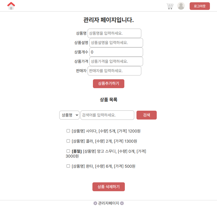 4. 관리자 계정 로그인 (하단에 관리페이지로 접근할 수 있는 버튼 추가)