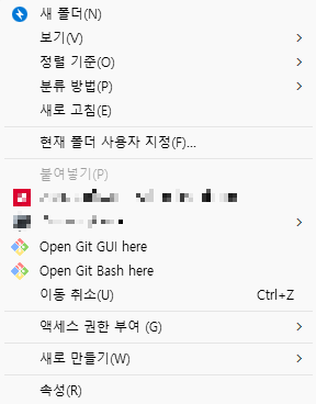 깃 업로드를 진행할 폴더에 들어가 우클릭을 하면 Open Git Bash here가 있다.