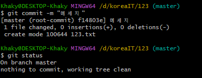 commit까지 완료한 파일은 더이상 status 명령어로 확인 할 수 없으며, 더 이상 commit할 파일이 없다는 것만 알려준다.