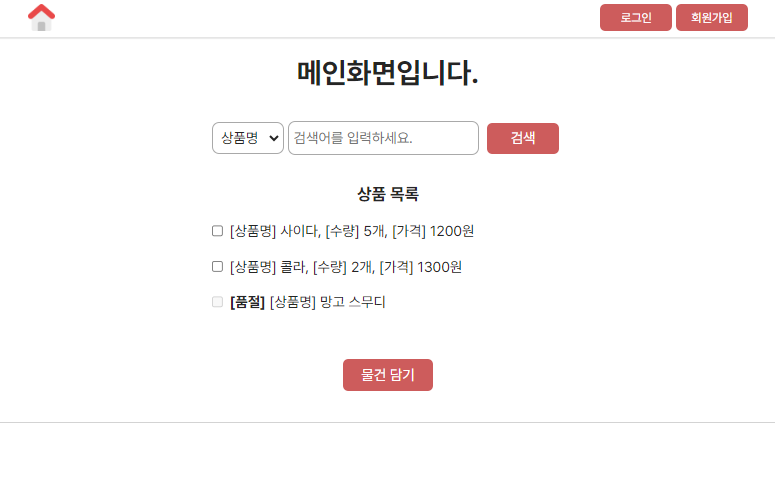 메인 페이지에서는 품절 상품일 경우 체크박스가 아예 노출되지 않았는데,