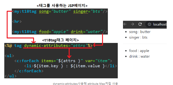 태그를 호출하는 쪽에서는 해당 attribute 값을 태그 속성을 통해 넘겨야한다.
