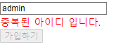 db에 있는 아이디와 중복된다면 중복된 아이디라고 문구를 띄울 예정이다.