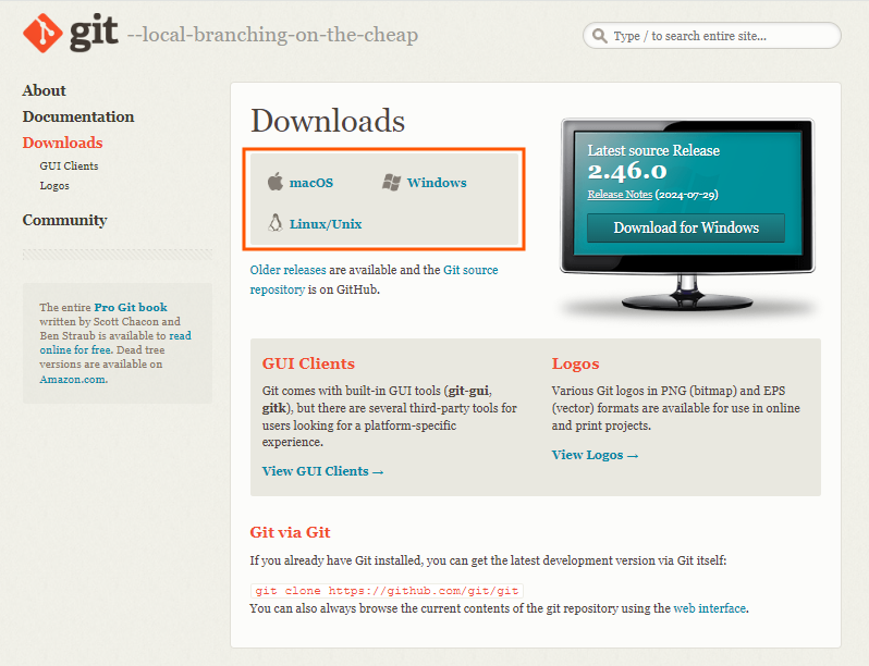 Downloads macOS Windows Linux/Unix Older releases are available and the Git source repository is on GitHub. GUI Clients Git comes with built-in GUI tools (git-gui, gitk), but there are several third-party tools for users looking for a platform-specific exp