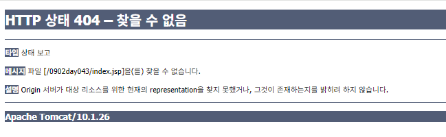 그러자 이제 서버는 켜지지만 index.jsp파일을 찾지 못하고 있다...