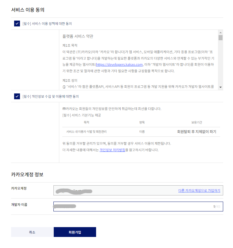 카카오 개발자 사이트에서 세팅하기
