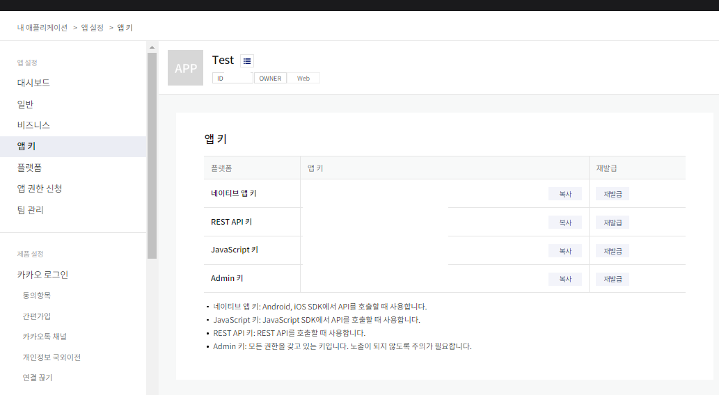 5. [앱 키] - javascript 키를 복사해온다.