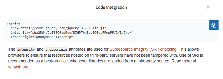 여기서 원하는 버전을 선택해서 CDN 스크립트 태그를 카피할 수도 있고,