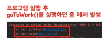JVM이 감지하여 핸들러에게 예외를 전달한다.