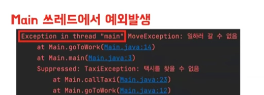 먼저 첫 줄에서 어떤 쓰레드에서 예외가 발생했는지 확인할 수 있다.