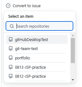 6번에서 만든 project를 클릭하면 Convert to issue를 통해 만들 수 있다.