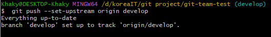 4. develop 브랜치 생성 (개발자가 자유롭게 개발하는 브랜치)