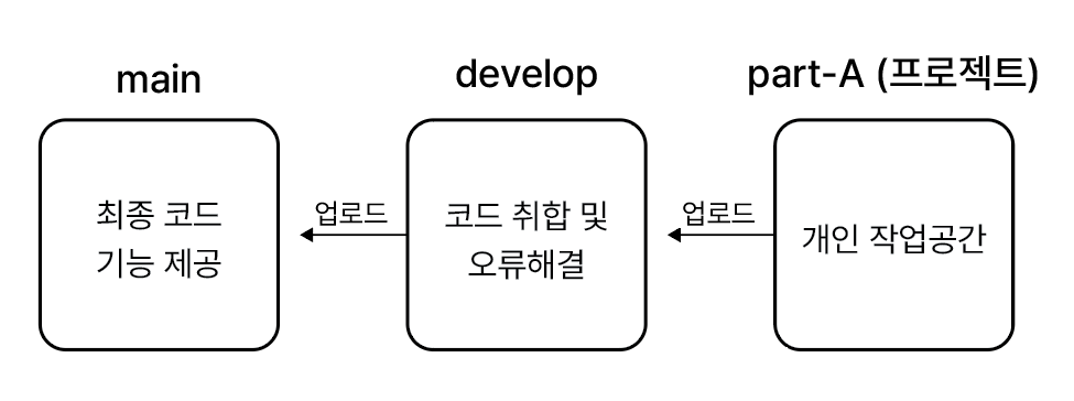 이 때 사용된 main 브랜치는 최종 프로덕트용 브랜치로, 공개되는 완성형 최종단계이다.