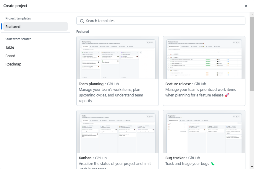 작업을 효율적으로 관리하기 위해 프로젝트 보드를 생성할 수 있다.