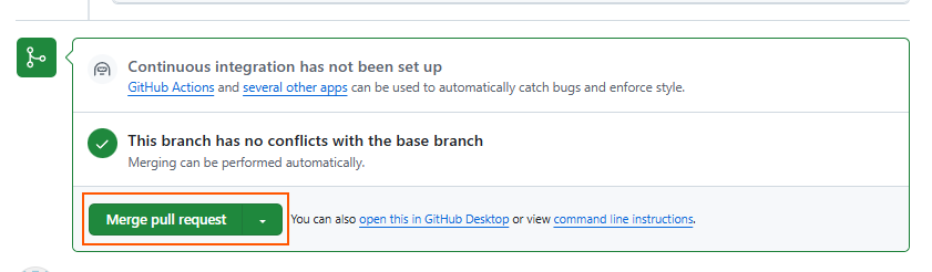 코드 리뷰 후 모두가 해당 코드가 괜찮다고 판단해 승인 했다면 Merge pull request를 통해 코드를 반영할 수 있다.