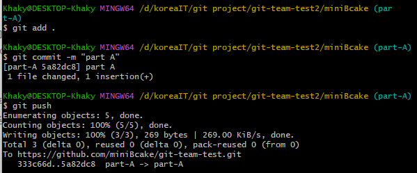 작업을 완료한 뒤에는 add . commit push를 통해 코드를 git에 업로드한다.