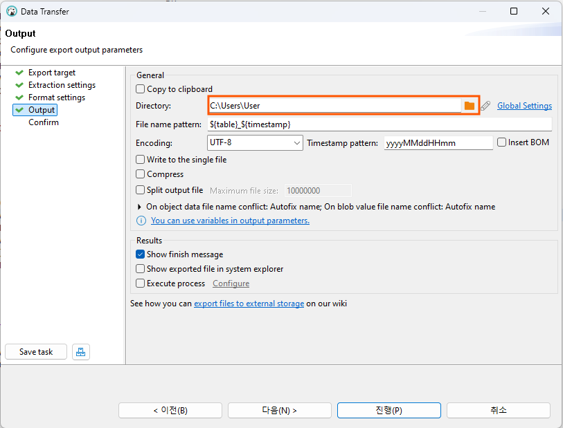 * 진행 중 이 부분을 수정해 저장할 폴더를 선택할 수 있다. (기본 C:\User\User)