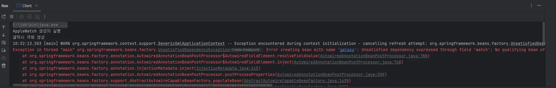 @Autowired를 통해 의존성 주입 시 발생하는 모호성 문제로 인해 예외가 발생했다.
