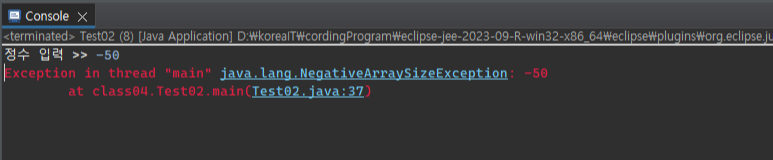 이는 배열의 길이가 음수로 들어갈 수 없기 때문에 뜬 오류로