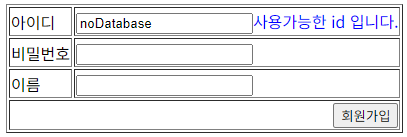 이러한 상황을 미리 방지하기 위해 유효값 검사(id 중복검사)를 통해 미리 사용자에게 고지할 수 있다.