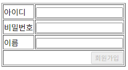 <td colspan="2" align="right"><input type="submit" value="회원가입"></td>