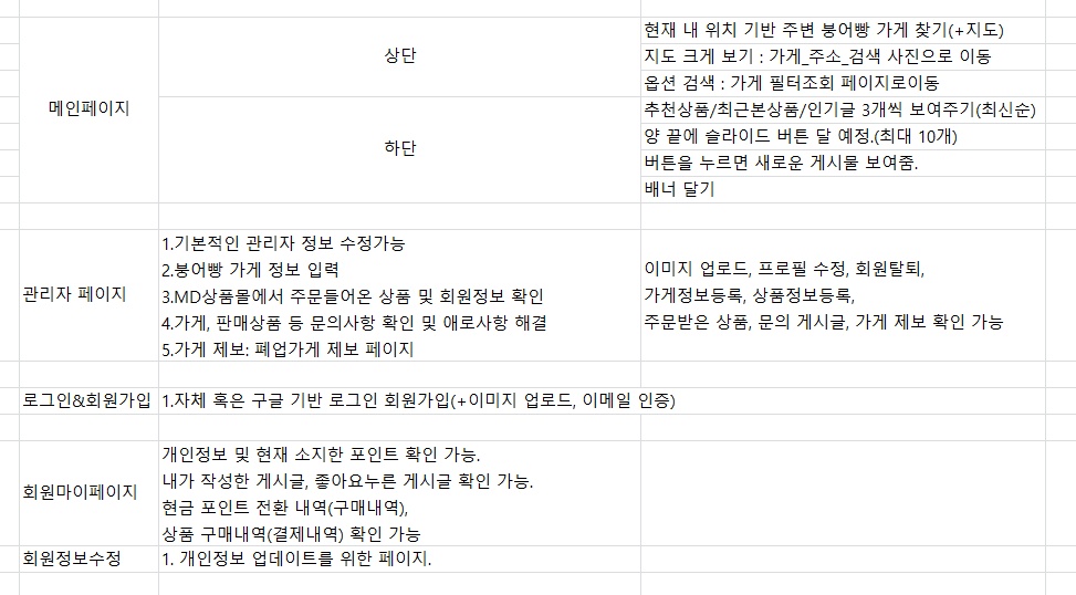 회의 후 데이터 작업을 들어갈 예정이라고 전달 받아 완성된 설계는 아니지만 참고용으로 자료를 전달했으며, View파트에 있지만 설계에 빠진 기능을 추가해 보완하고, 작업시간 상 중복된 기능을 제거하는 단계를 거쳤다.