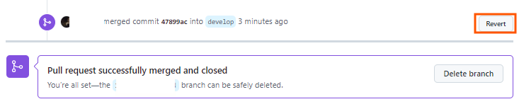 이때 PR하기 전 상태로 돌아갈 수 있는 Revert를 Git-Hub에서 제공하고 있으므로 해당 방식을 이용해보자.