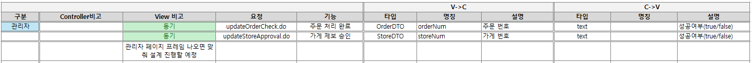 - 일부 기능(마이페이지 등) Controller 담당 Controller 끼리 조율 후 전달