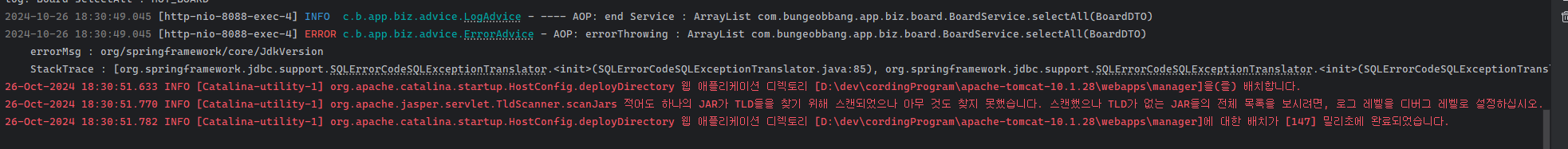 SQLErrorCodeSQLExceptionTranslator 에러는 sql 실행에 문제가 있다는 이야기로 여러가지 원인이 있지만 가장 많은 비중을 차지하는 부분이 sql문 오류이다.