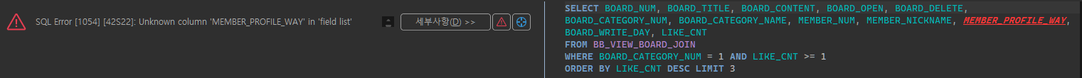 호출하고 있는 view의 컬럼을 살펴보면 memberProfileWay가 없다.