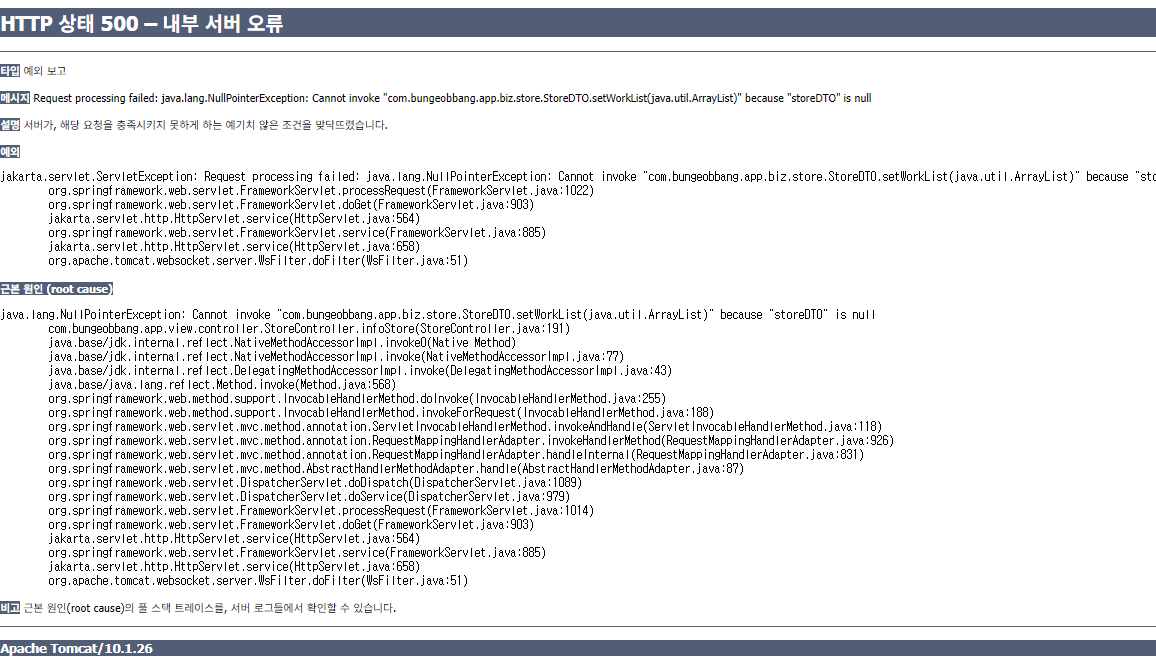 500에러가 발생해서 콘솔을 확인했다.