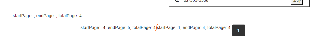 총 3번 c:out을 찍어 확인하는데 정상적으로 값이 완성되는 것을 확인할 수 있었다. 그런데 총 페이지가 4까지 로드되어야하는데, 1에서 멈추는 것을 확인할 수 있었다. 다음 버튼로 로딩되지 않는다.