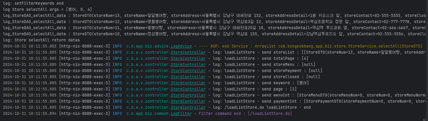 다행히 이때부터 이유는 정확히 알 수 없지만 '붕어'가 비 정상적으로라도 검색이 되기 시작해서 c:out으로 확인한 것이다.
