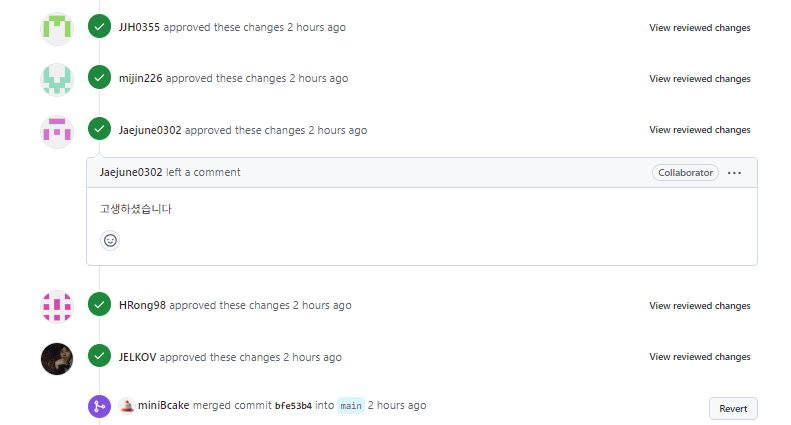 개발 브랜치의 경우에는 최종 브랜치와 같지만 lock를 해제해 모든 팀원이 코드리뷰를 완료하면 바로 병합을 진행할 수 있도록 작업했다.