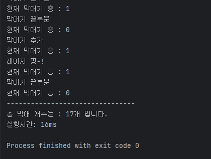 System.out.println("현재 막대기 층 : "+stack);