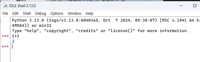 다운로드 후에는 별도의 IDE 설치 없이 IDLE Shell을 통해 cmd처럼 사용할 수 있다.