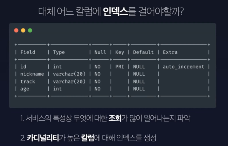 특히 정렬을 할 때 인덱스가 아닌 컬럼이라면 데이터를 전부 읽고 정렬해야하므로 성능이 저하되지만 인덱스된 컬럼이라면 인덱스 순서대로 파일을 읽기만 하면되기 때문에 성능에 유리하다. (GROUP BY도 동일)