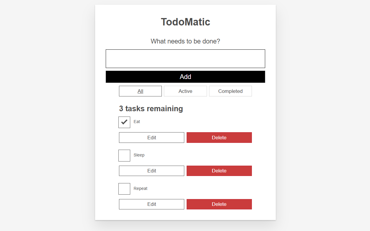 여러분이 React로 개념 증명을 만드는, 곧 사용자가 원하는 작업을 추가, 편집, 그리고 삭제할 수 있으며, 작업을 삭제하지 않고 완료로 표시할 수도 있는 앱을 만드는 작업을 맡게 되었다고 가정
