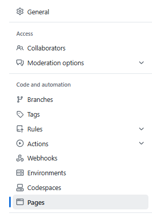 먼저 배포할 리포지토리 설정에서 Pages탭에 들어간다.