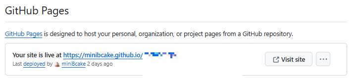 잠시 뒤 상단에 visit site가 뜬다. 이 주소로 접속하면 깃 리포지토리에 올라와있는 index.html 페이지가 로드되는 걸 확인할 수 있다.