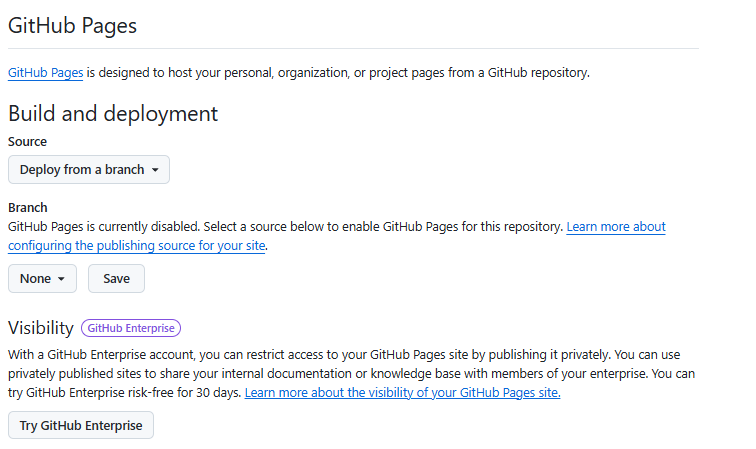 궁금해서 spring 프로젝트로 올려두고 해봤는데, 당연히 되지 않았다. Git Hub Pages는 주로 정적 웹사이트 호스팅을 위한 서비스이기 때문이다. (별도의 백엔드 조합으로 사용하는 방식도 가능하다고 한다. API 사용)