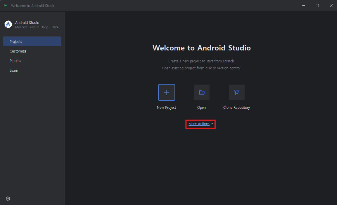 More Actions에서 SDK Manager를 선택한다.