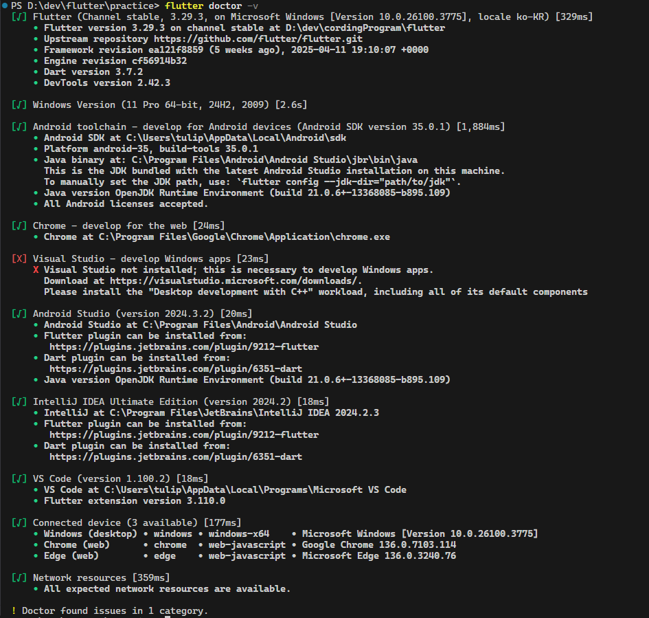 다시 flutter doctor -v를 해보면,