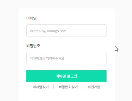 로그인페이지 방문 후 첫 선택 때에는 푸른 박스 쉐도우가 뜨도록 하였으며, 그 이후 사용자가 다른 곳을 선택하였을 때 값이 없다면 붉은색 테두리로 변경되도록 하였습니다.