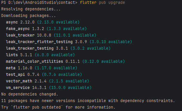 flutter pub upgrade
