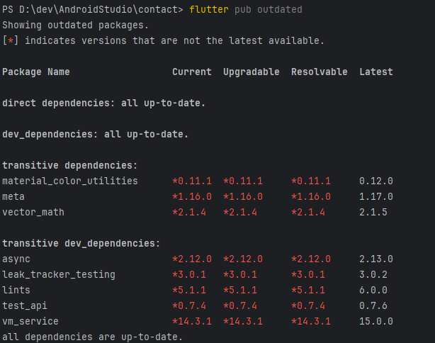 flutter pub outdated